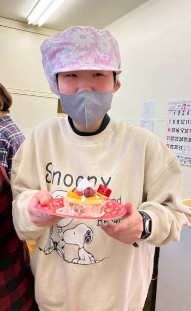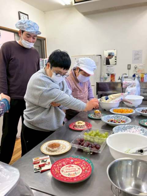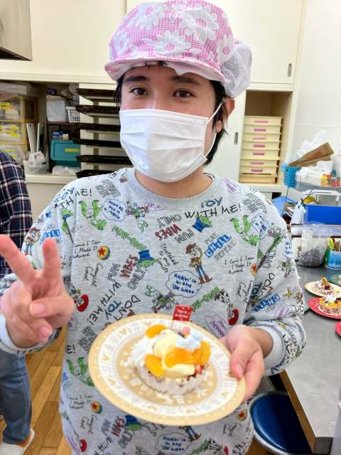 第2こづつみ作業所で作っているカップケーキの上に、クリーム、フルーツ、etc…