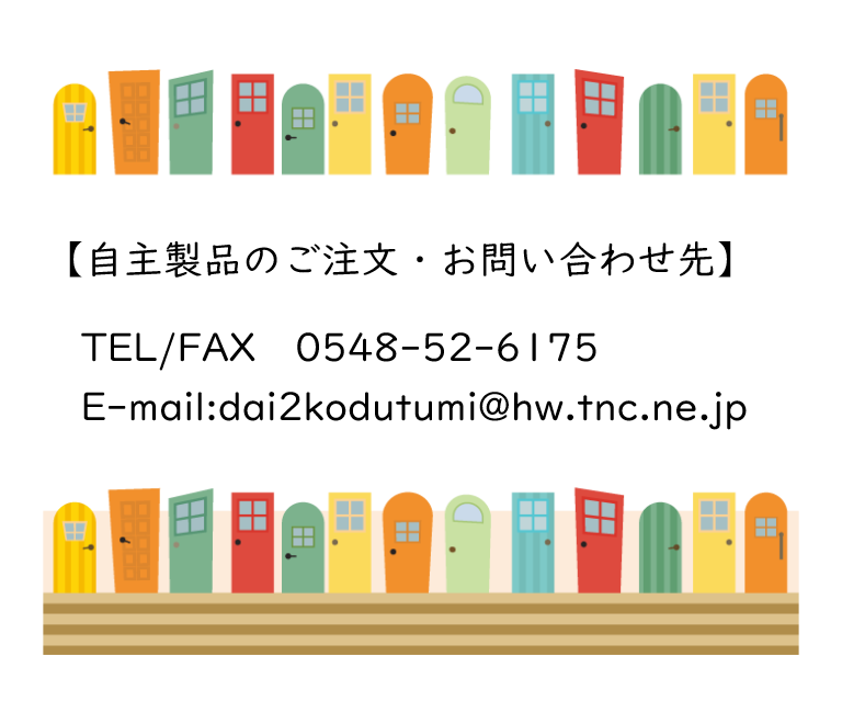 0548-52-6175 fax 0548-52-6175 E-mail:dai2kodutumi@hw.tnc.ne.jp |