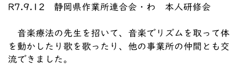 一日一日を心身共に健やかに過ごすことを第一に考慮しつつ、個々の能力に応じた自立と、仕事をすることを通して地域社会の一員としての自覚を育てる支援を行う。 働くことによって報酬を得、そのお金を自分のために使う喜びを知ることで働く意欲を育てる。一般就労を目的とする人には、一般企業への実習、出向を行い社会的自立に向けて支援する。 |